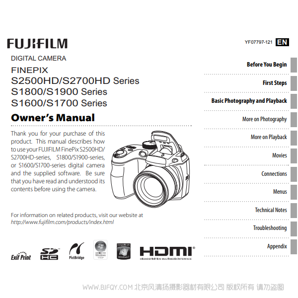 富士 Finepix S2500HD S2700HD S1800 S1900 S1600 S1700 Series 英文版 owner's manual 用户手册北京风清扬摄影器材有限公司 关于这款产品的说明书下载链接