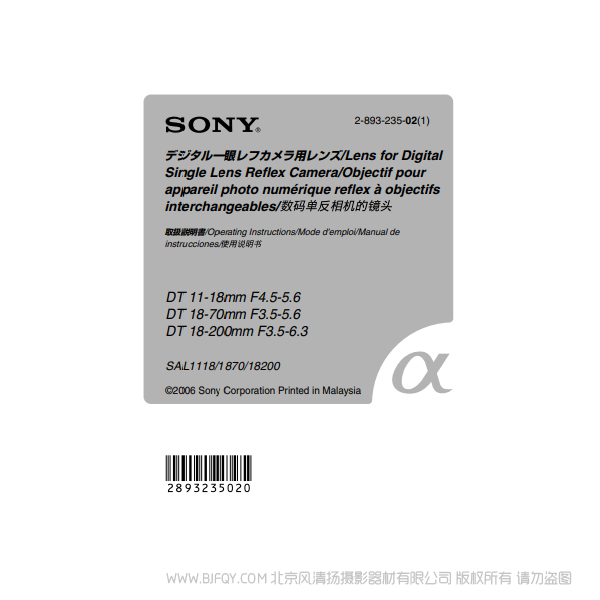 索尼 SAL1118  SAL1870 SAL18200  单反镜头 a卡口 说明书下载 使用手册 pdf 免费 操作指南 如何使用 快速上手