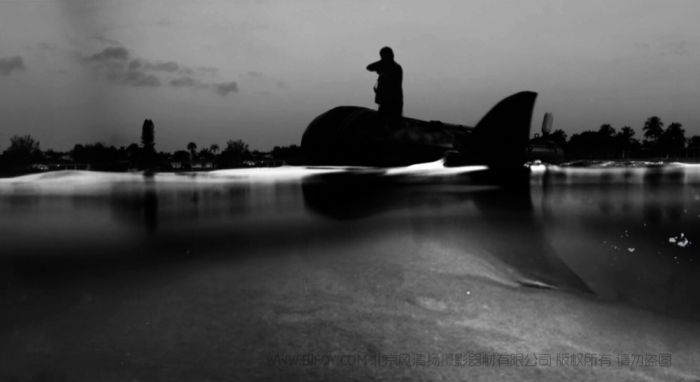 以黑白色调拍摄能获得更加厚重的质感,同时也更能让与水相关的场景透出令人不安的感觉,这能有利于创作出一部戏剧性极强、角色特点突出的影片,不落入鲨鱼袭击类影片的俗套,从而牵动观众的每一根神经。由于这款摄影机拥有轻质的设计,摄制组成功拍摄到了影片中Cutler坐在一个小型充气筏上一边尽量保持平衡、一边捕猎鲨鱼的紧张刺激场景。