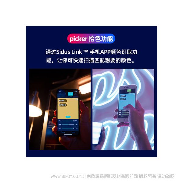 3200K-6500K可变色温,从钨丝灯到镝灯,将世界冷暖一律握在手中。从色调、饱和度到亮度的无级调节,追求完美的影人也能得到满足。特增随机频率模式,让9种常规光效也能碰撞出令人眼前一亮的新火花。