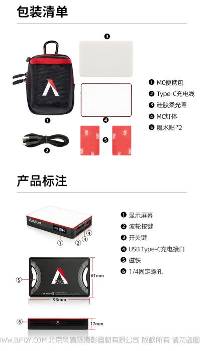 Aputure/爱图仕 MC 摄影补光灯 RGB室内常亮灯外拍灯 直播视频灯