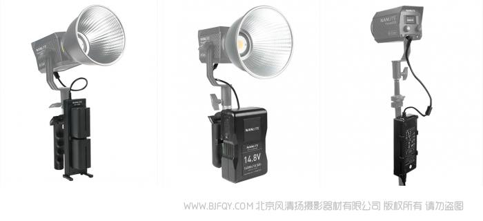 Forza 60B不仅支持适配器供电,还可以可使用NP-F电池以及V口电池进行供电,