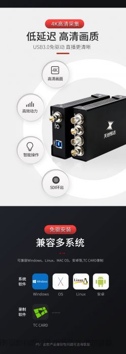 天创恒达 TC-UB570G Pro 12G-SDI 1路SDI 4K 高清USB采集卡
