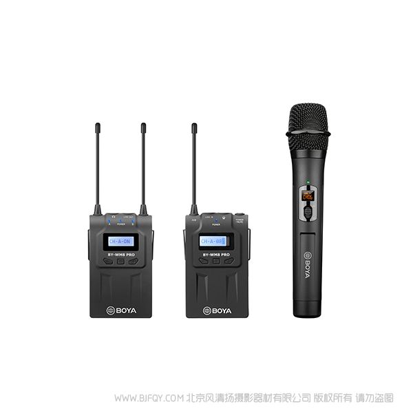 BOYA WM8 Pro是升级后的UHF双通道无线麦克风系统,它有简约易读的菜单,高品质的音质和稳定的性能。