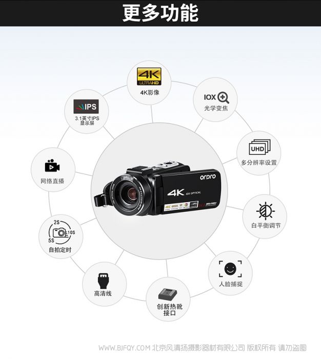 欧达 Ordro HDR-AC7高清4K摄像机数码直播DV10倍光变家用旅游会议直播