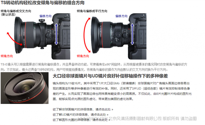 镜头具备TS转动机构,可轻松改变倾角与偏移的组合方向,应对用户不同需求。