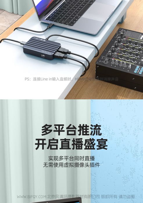 两路高清输入 4K输入环出 1080P高清采集 60帧流畅画面 混音功能 免驱动安装