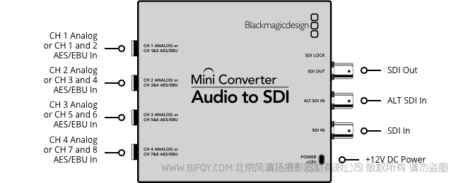 BMD Mini Converter Audio to SDI SD和HD格式将音频嵌入任何SDI源,较高可达1080p60 音频嵌入SDI信号