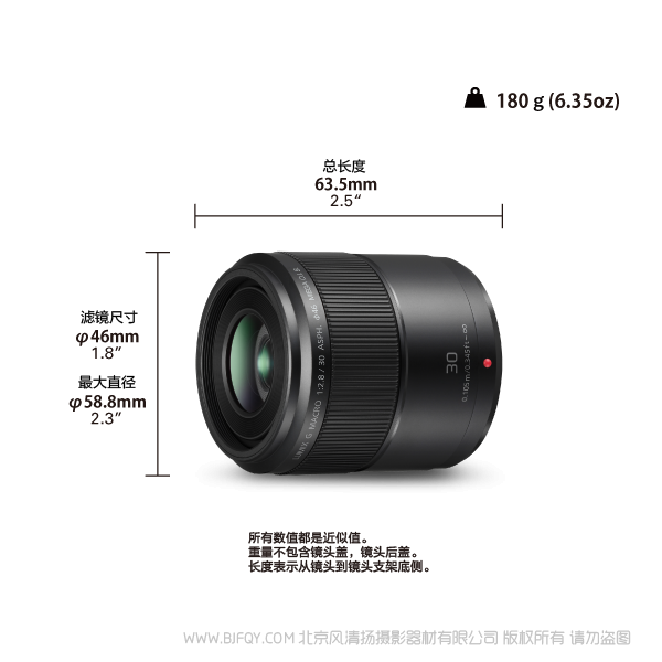 | 总长度 | 约 63.5 毫米/2.5 英寸(从镜头顶端到镜头支架的底端) | ||