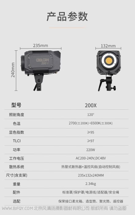 利帅 LS COOLCAM200D 固金 200X补光灯 聚光灯常亮灯大功率主光灯直播