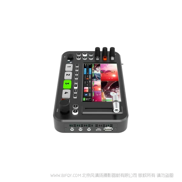 广播级切换台,内置5.5寸高清屏幕,搭载USB3.0推流接口,支持2路画中画任意布局,4路HDMl高清输入;内置媒体池,支持静态图片加载;HDM输出口支持PGM/PST/PVW功能复用;通过T-BAR实现多种转场特效;Al智能算法,实现Chroma Key电影级抠像;支持云台相机快捷调用,实现PTZ云台控制,内置混音器,实现音频的混音输出;搭载耳机监听接口 视频采样 YUV 4:4:4;整机延迟3帧;音频延迟:0-500ms(0-30/25frame);重量:0.5kg;设备尺寸:220mm*126mm*33mm