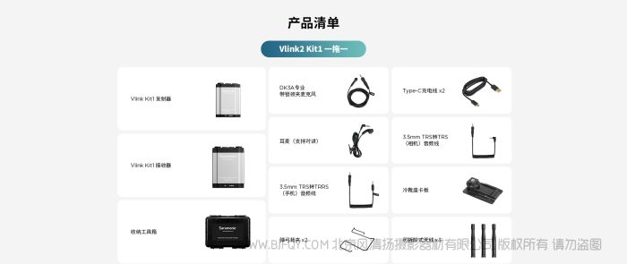 Saramonic 枫笛 Vlink2 Kit1 2.4 GHz 无线麦克风系统 双向监听对讲 无障碍100米传输 19小时续航
