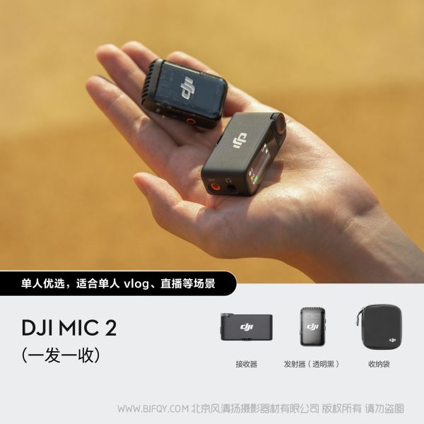 DJI Mic 2(一发一收)大疆二代麦克风 6小时续航 32-Bit 浮点内录 250米 稳定无线传输