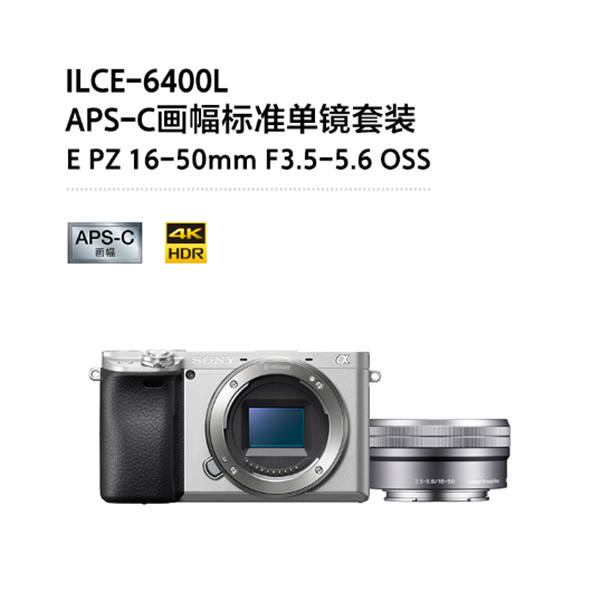 【缺货】索尼 sony ILCE-6400L APS-C画幅标准单镜套装 银色(约2420万有效像素 SELP1650镜头 A6400L/α6400) A6400M A6400L手柄套装