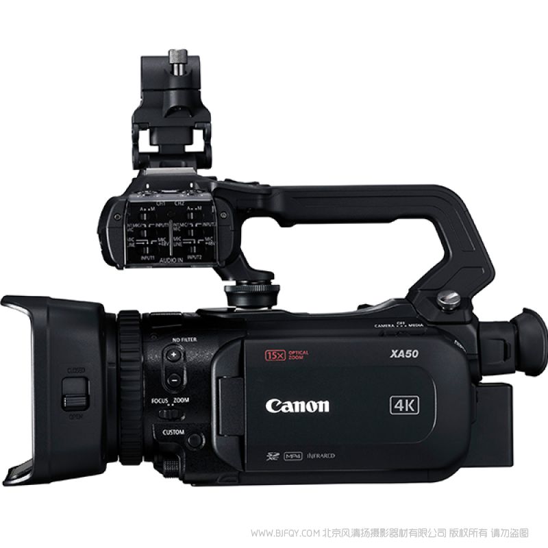 XA50是佳能XA系列专业摄像机向4K转变的重要机型,它继承了XF系列4K专业摄像机XF405/XF400的1.0型CMOS影像传感器、15倍光学变焦、DIGIC DV 6高速影像处理平台和先进的全像素双核CMOS自动对焦技术,更加注重经济性,可广泛适用于新闻采访,影像制作学院,企业视频等多种制作用途。