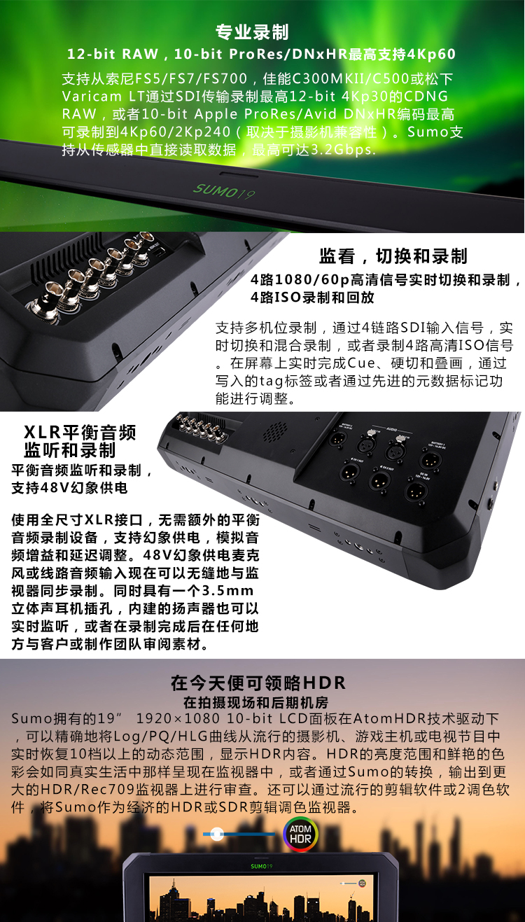 【停产】阿童木ATOMOS 4K HDR SUMO19寸 监视记录仪