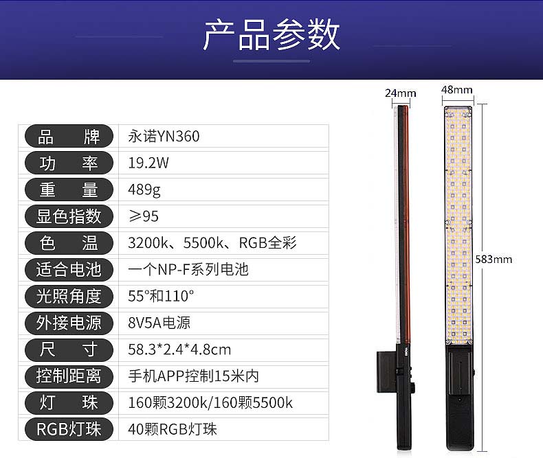 永诺YN360LED摄影灯可调色温冰灯RGB手持棒灯手机APP控制补光灯棒
