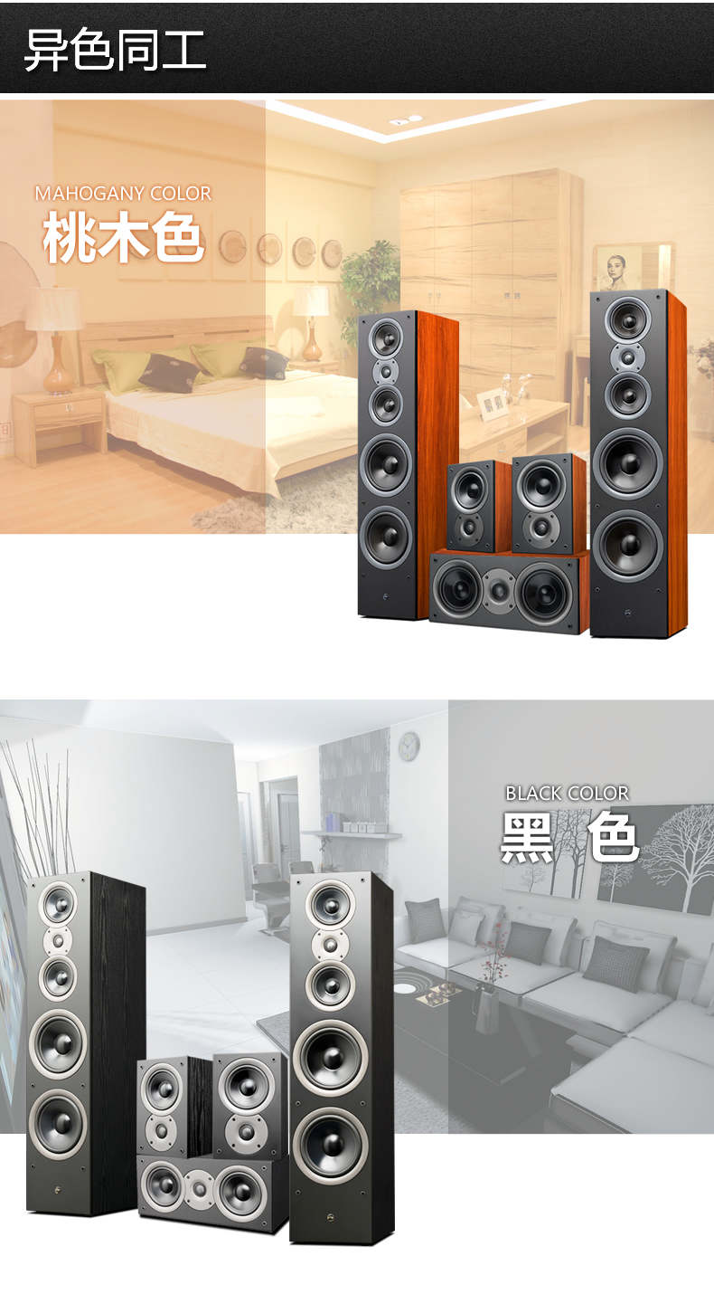 HiVi/惠威Jam&Lab8家庭影院5.0音响套装客厅音箱桃木色黑色有
